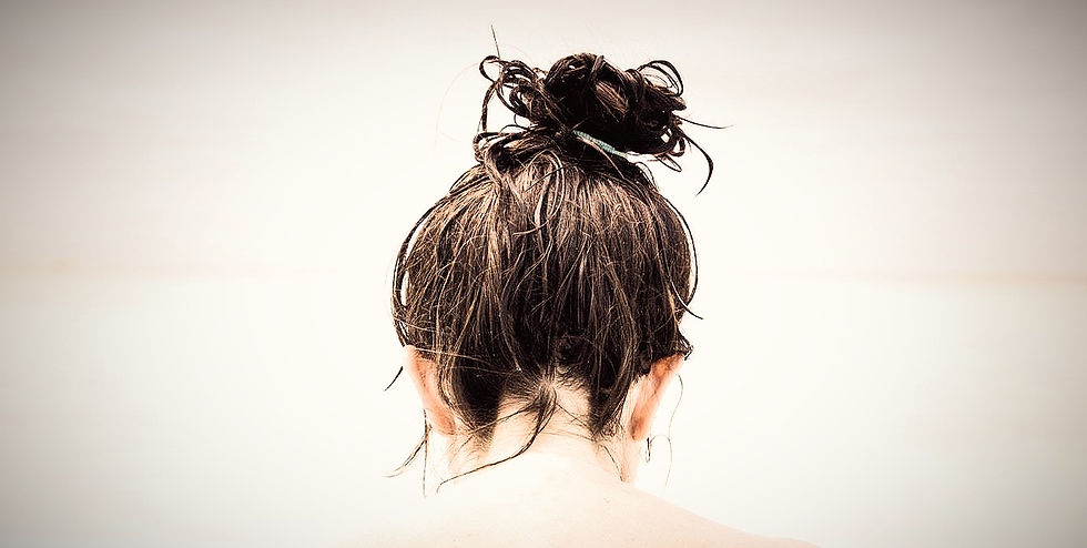 Te aconsejo que ates tu pelo sobre la parte superior de la cabeza formando un Yata (se pronuncia iata), de esta forma podrás ejecutar la mayoría de las posturas sin que tu pelo te moleste.